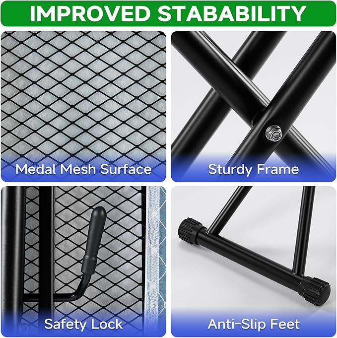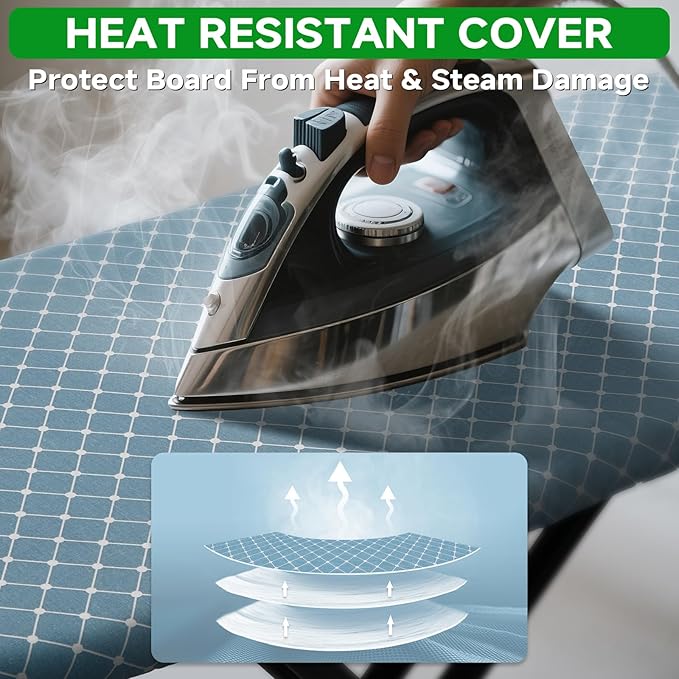 - Heat-Resistant Cover: Features a stylish cross-striped blue cover that is heat and steam resistant, protecting the board from scorching. The breathable metal mesh base enhances steam flow for faster wrinkle removal.