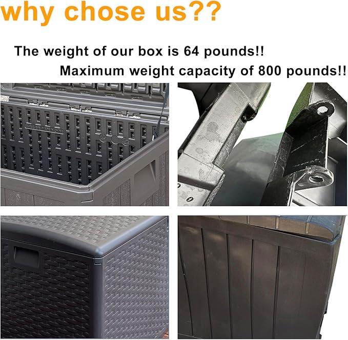 - Durable Resin Construction: Built with double-wall resin, this waterproof and weather-resistant deck box ensures long-lasting reliability and supports the weight of three adults for extra seating