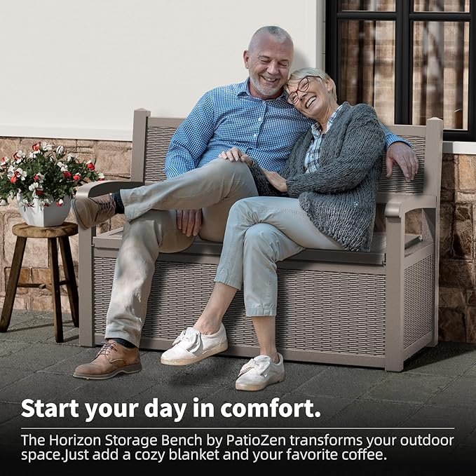 - 【Resin Construction】: This storage bench deck box is made of high-quality resin, which is extremely sturdy and durable, and can withstand all kinds of weather conditions without breaking or fading easily. It will maintain its good appearance for a long time.