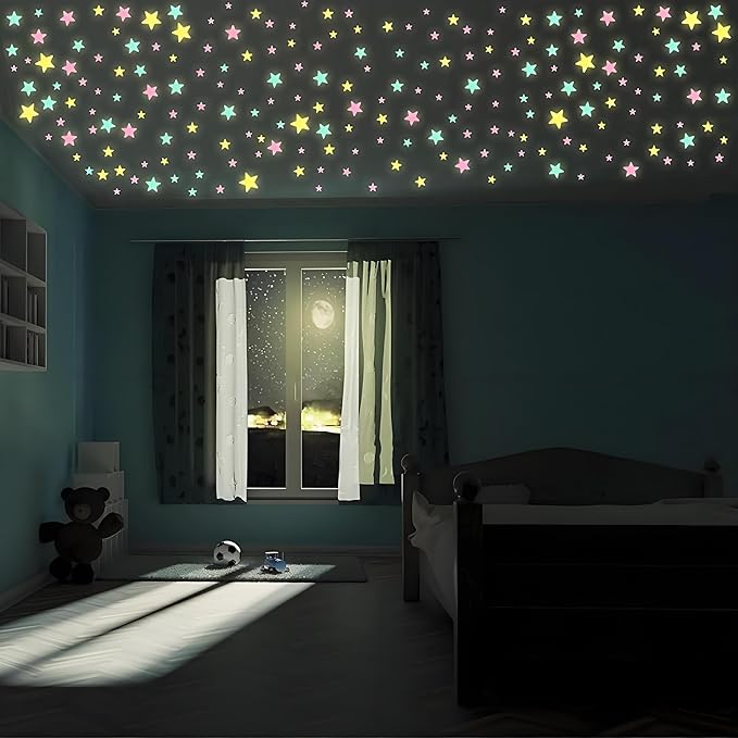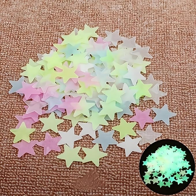 100Pcs Glow in The Dark Stars Wall Stickers, Self-Adhesive Luminous Decor for Bedroom, Room and Home Art, Fluorescent Night Sky Ceiling Decals for Party, Room Decorations