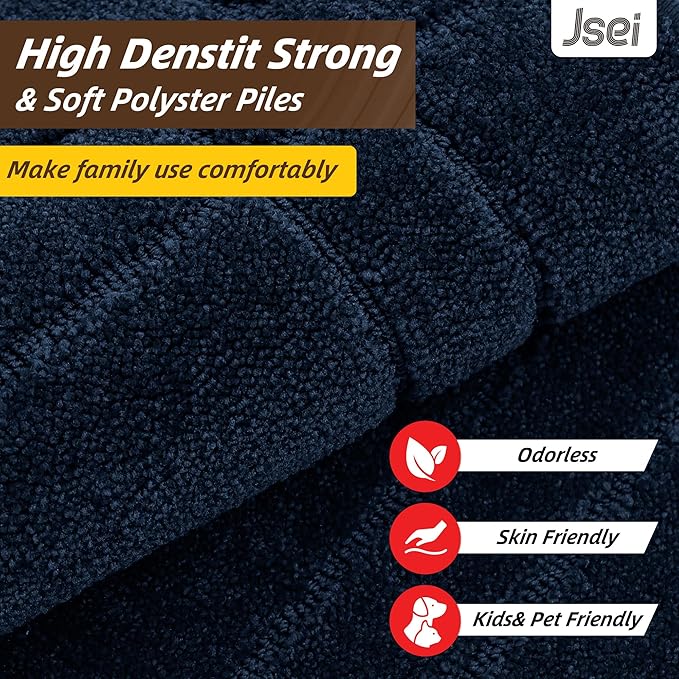 JSEI Entryway Rugs Doormat 32"x48", Non-Slip Dirt Trapper Door Mats Indoor, Washable Absorbent and Stain Resist Welcome Floor Mat for Front Door, Dog Door Mat, Muddy Wet Shoes & Paws, Navy Blue