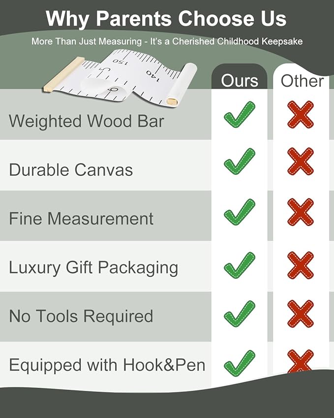 - ๐Thoughtful Gift for Families โ The ultimate sentimental gift for expecting parents, birthdays, or holidays! A practical yet sentimental kid height tracker for birthdays, baby showers, or holidays. Celebrate every inch of your childโs journey with this keepsake kids height measurement set.