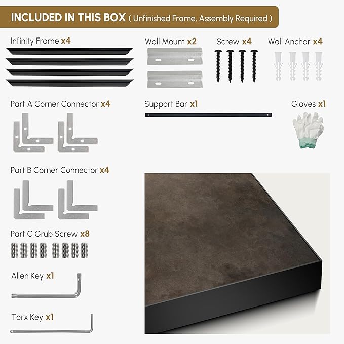 - Assembly Required: The artwork comes with the frame components unassembled. Don¡¯t worry ¡ª setup is straightforward and tool-friendly. For best results and accurate alignment, we recommend two people to ensure a smooth assembly and a stable, secure wall mount.