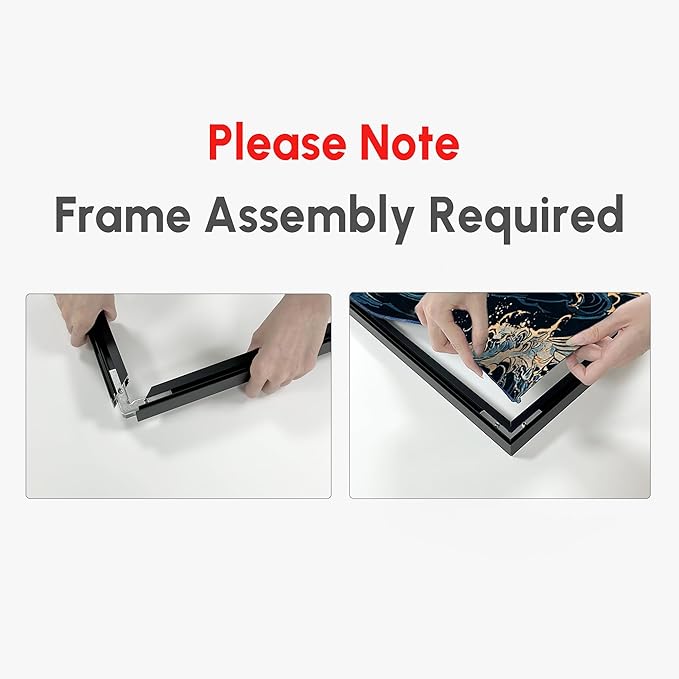 - Assembly Required: The artwork comes with the frame components unassembled. Don’t worry — setup is straightforward and tool-friendly. For best results and accurate alignment, we recommend two people to ensure a smooth assembly and a stable, secure wall mount.