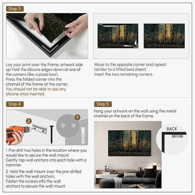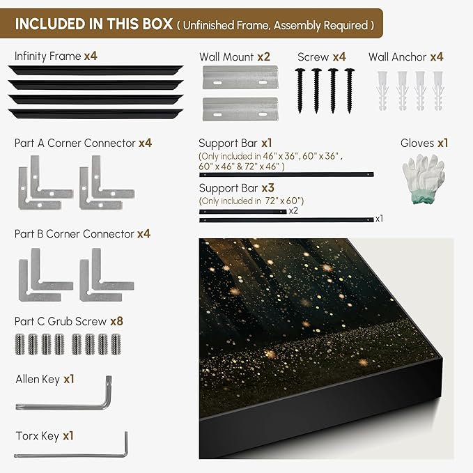 - Assembly Required: The artwork comes with the frame components unassembled. Don¡¯t worry ¡ª setup is straightforward and tool-friendly. For best results and accurate alignment, we recommend two people to ensure a smooth assembly and a stable, secure wall mount.