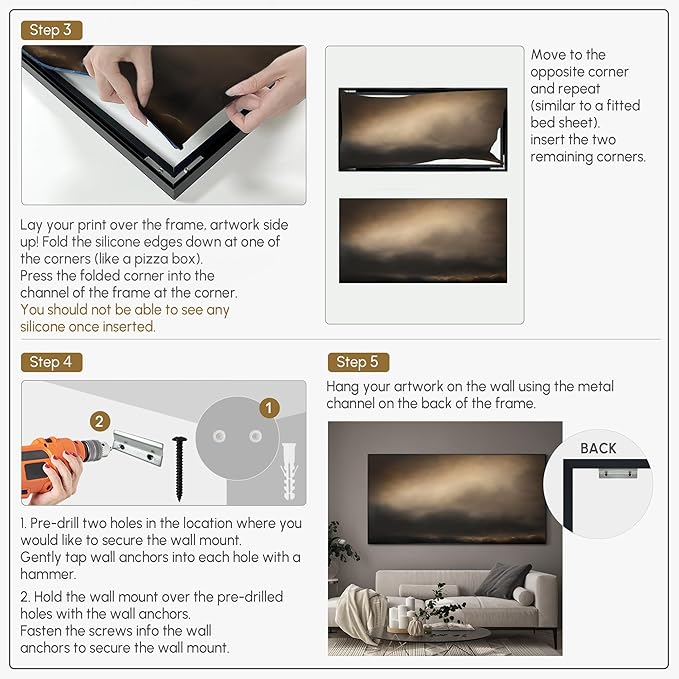 - Assembly Required: The artwork comes with the frame components unassembled. Don’t worry — setup is straightforward and tool-friendly. For best results and accurate alignment, we recommend two people to ensure a smooth assembly and a stable, secure wall mount.