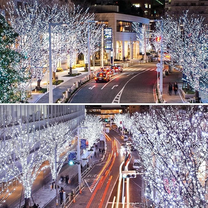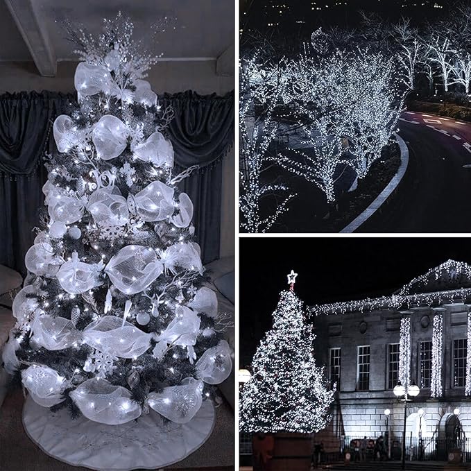 - [Waterproof & Easy to Use]: These Christmas twinkle lights outdoor waterproof, IP 65 waterproof performance, for indoor and outdoor, and resist all kind of weather, no matter rain or snow. Each 33 ft string with 4.9 ft connecting wire and 100 LED is long enough for wrapping around Christmas tree , or wherever you like to light up, Porch, Gardens, Lawn, Yard, Gate etc.