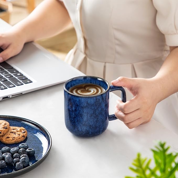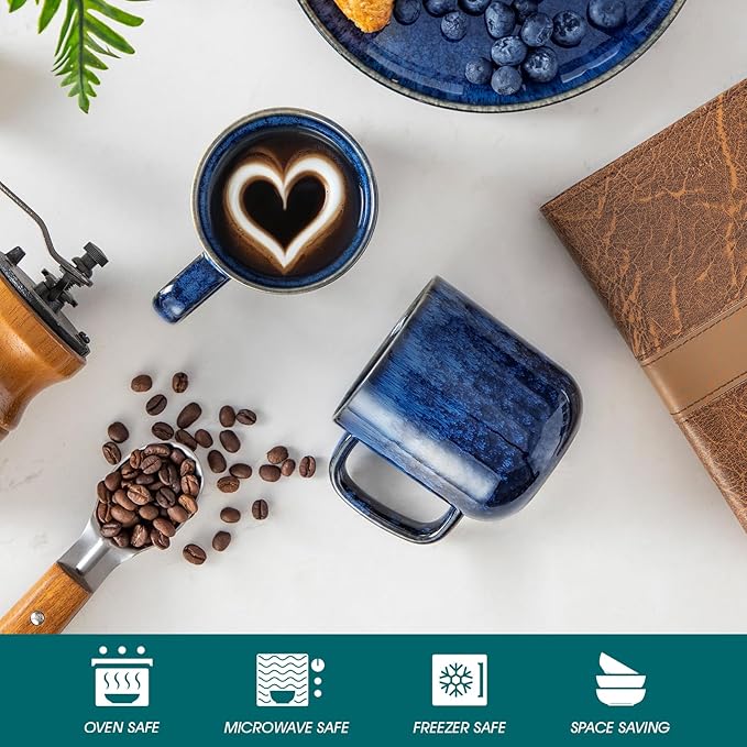 vancasso STARRY Coffee Mugs Set, 12 oz Ceramic Coffee Cups for Latte Hot Tea Cappuccino Cocoa Milk Stoneware Cups Set of 6, Dishwasher & Microwave Safe, Blue