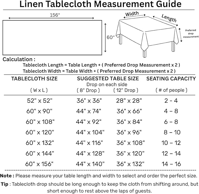 - ๐ฆ๐ถ๐๐ฒ : ๐ฒ๐ฌ"๐ช ๐ ๐ญ๐ฑ๐ฒ"๐ | We recommend measuring your table or space to ensure the right size before buying. Sizes are standard but they may vary slightly due to care taken to provide a seamless look and invisible stitching. Please scroll/click on the size guide image for more details.