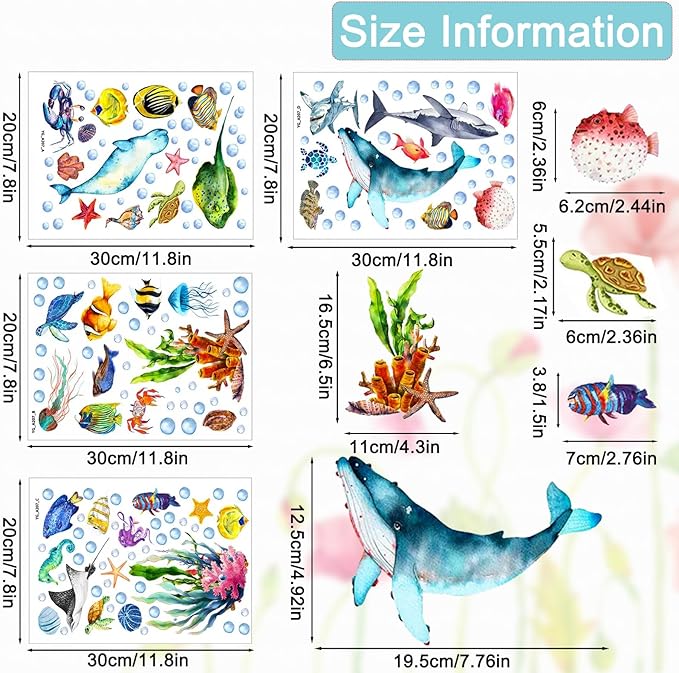 - Safe & Reusable Wall Stickers: The ocean wall decals are made of durable, waterproof PVC with strong self-adhesive backing. Repositionable without losing stickiness-peel & re-stick for mess-free decorating! Perfect for bedrooms, playrooms, classroom, nursery,day-cares, or even dorm decor!