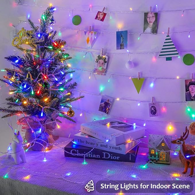 - Ultra-Bright and Durable Battery Powered String Lights: Each string light is 33 feet, features 100 super bright LEDs and a waterproof battery case with 8 lighting modes to ensure longevity and reliability. The multicolor Christmas lights emit a classic, romantic and colorful glow in the dark, making them an ideal choice for indoor and outdoor decorations. These fairy lights are perfect for Christmas, birthdays, parties, weddings, creating a cozy and joyful atmosphere.