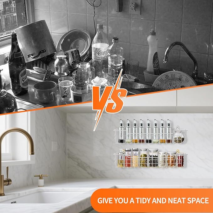 - Versatile Wall Spice Rack: Perfect for kitchens, bedrooms, bathrooms, or RVs. This space-saving spice shelf adds stylish storage anywhere while keeping essentials within reach