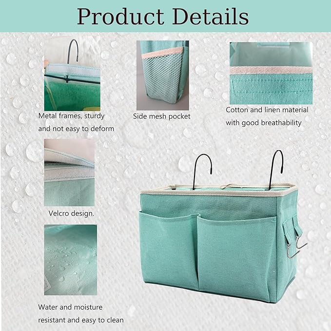 2-Pack Bedside Caddy Bedside Hanging Storage Basket Multi-Function Organizer Caddy for Bunk and Hospital Beds Dorm Rooms Bed Rails, Can be Placed Glasses Books Mobile Phones(2pcs Green)
