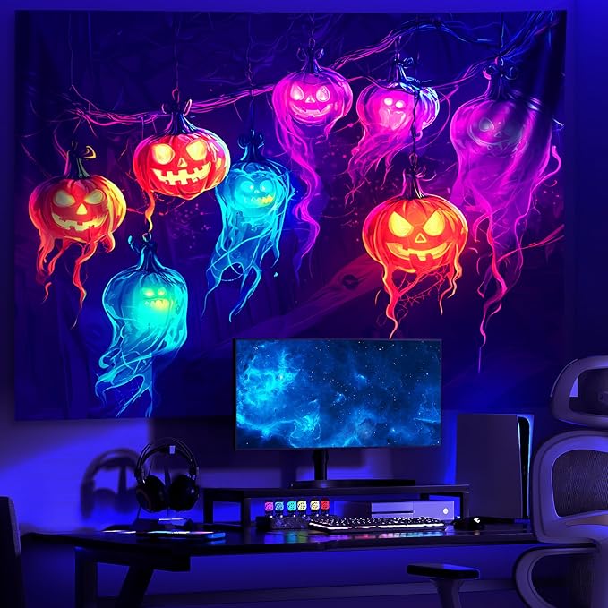AOHMPT Glow-in-the-Dark Halloween Tapestry - UV Reactive Black Light Wall Hanging Decor for Spooky Parties, Bedroom, Living Room (Jack-o'-lantern, 59" L x 51" W, Unframed)