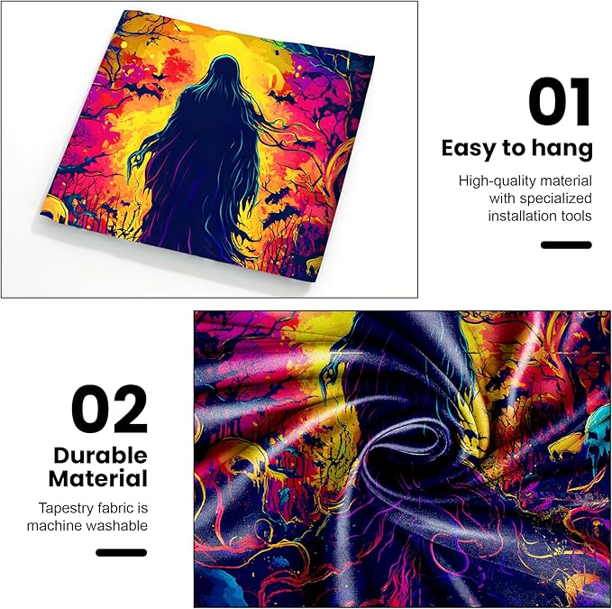 - 【Durable & Versatile】Made from premium polyester, this lightweight yet durable fabric works as wall art, a curtain, tablecloth, or photo backdrop for unforgettable Halloween moments.