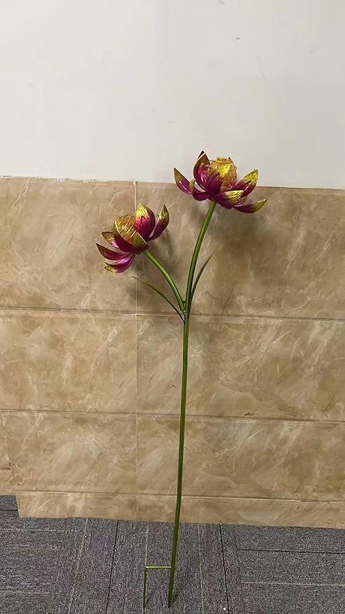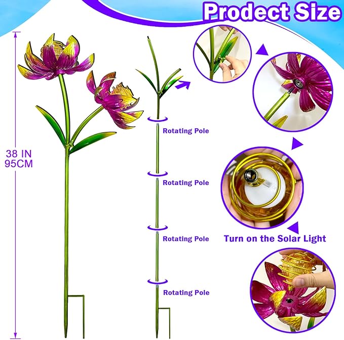 - Elegant Twin Flower Design: Inspired by nature, this solar garden decor features a stunning Twin flower design with vibrant colors. Crafted from durable metal and coated with a rust-resistant finish, it adds a touch of charm to your yard decor while standing up to harsh weather.