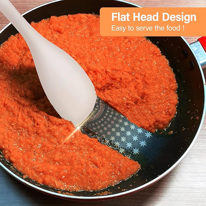 - ๐ณใAnti-Scratch & Premium SiliconeใThis large silicone cooking spoon set are made of top grade 100% BPA-free silicone material. It also comes with a non-stick surface, which won't scratch your non-stick cookware.The heat-resistant silicone withstands temperatures up to 480ยฐF (250ยฐC), ideal for searing meats, simmering sauces, or baking. Its flexible edge adapts to pan contours, while the slotted design drains excess oil or broth for healthier meals.