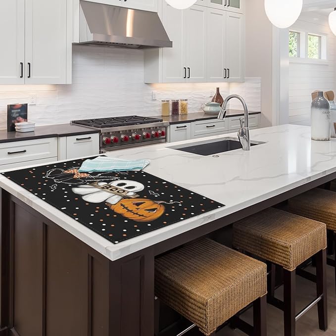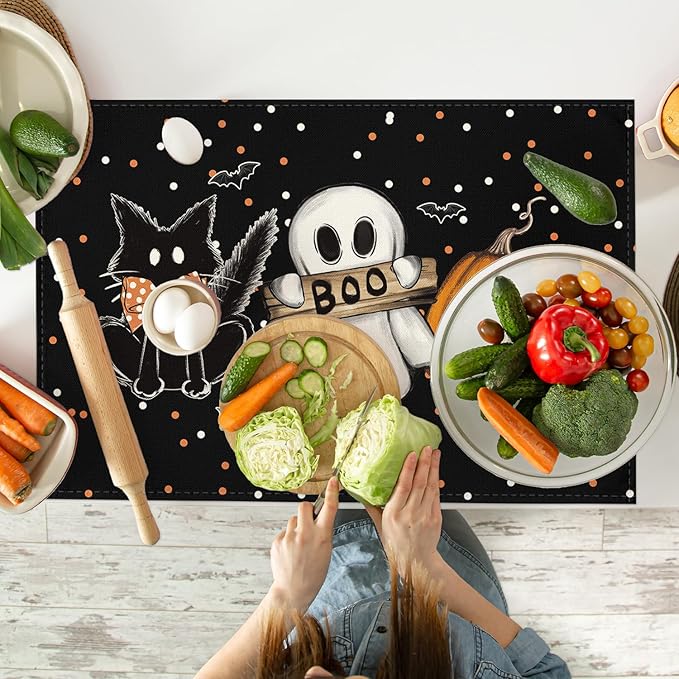 Artoid Mode Cat Ghost Pumpkin Halloween Placemats, 24x36 Inch Extra Large Table Mats for Kitchen Countertop Protector Dining Decoration
