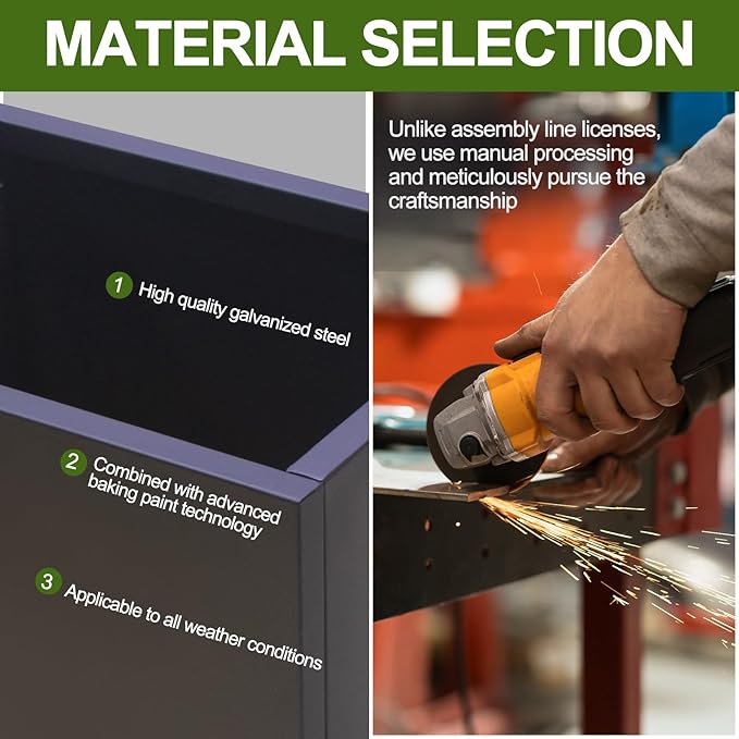 - 【ROBUST METAL CONSTRUCTION】Crafted from sturdy galvanized steel, this spacious planter boasts exceptional durability, ensuring it withstands outdoor elements without rusting or fading. Its weather-resistant design makes it suitable for year-round use in temperatures ranging from freezing cold to scorching heat, ideal for enhancing both indoor and outdoor settings.