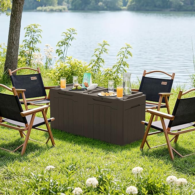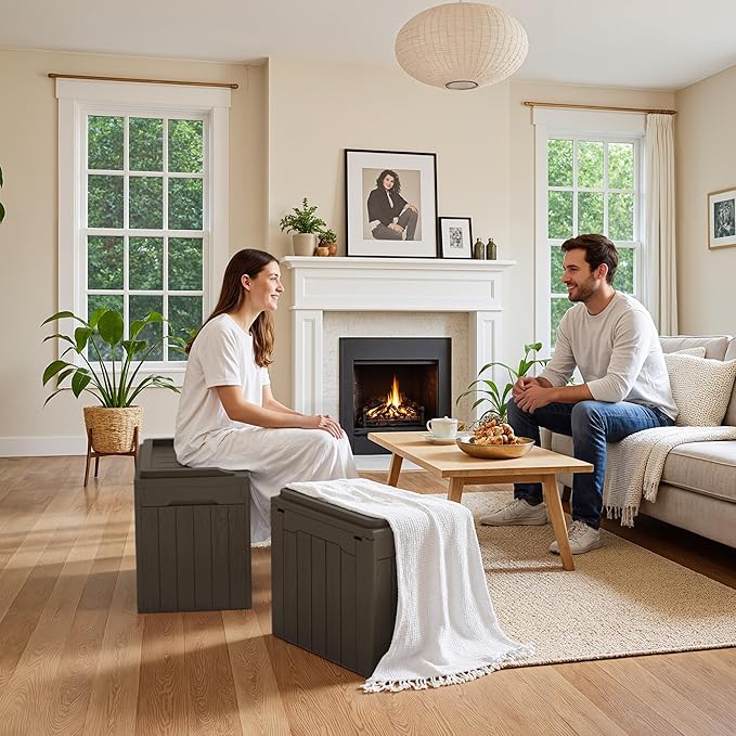 - As Extra Seats: In addition to being used as deck storage, the lid can be used for additional indoor and outdoor seating. The maximum load capacity of the lid is 220 LBS, which can easily carry the weight of an adult