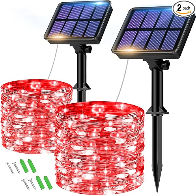 - Waterproof Design for All Weather: Light string and solar panel are IP65 waterproof to withstand any weather, either rain, sun, or snow. Safe for outdoor use, Don't worry about short circuits or bad weather damage (can't soak in water). Emit a red light after rain, romantic and beautify the yard