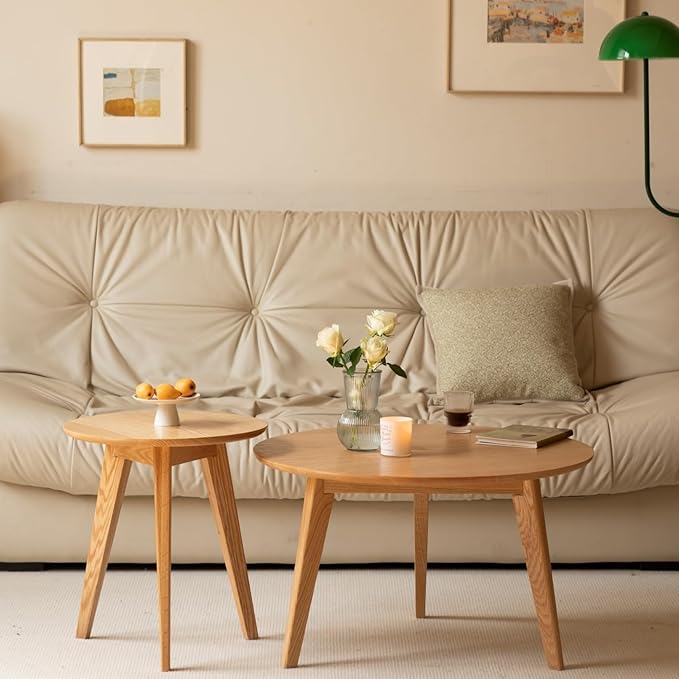 - 【100% Premium Solid Oak】 This Round coffee table is made entirely from FAS-grade North American oak, ensuring superior quality, including both the tabletop and legs. The rich, natural wood grain enhances its elegant appearance. Unlike other products, no auxiliary or artificial materials are used, providing a longer lifespan without deformation.