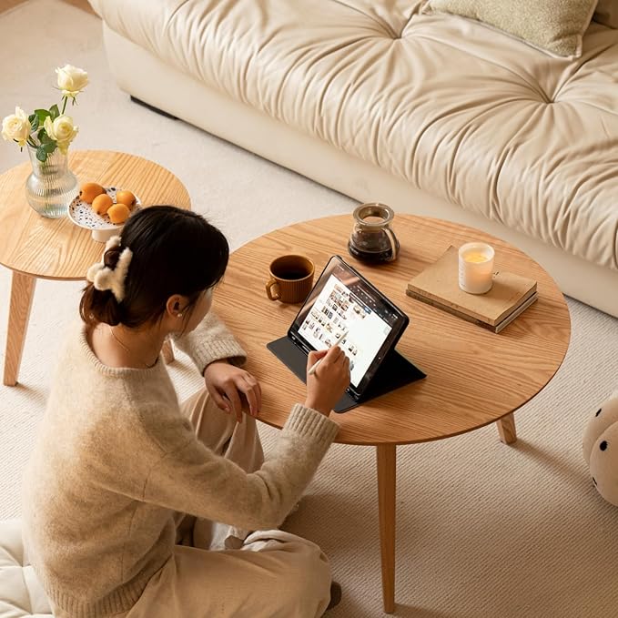 - 【100% Premium Solid Oak】This Round coffee table is made entirely from FAS-grade North American oak, ensuring superior quality, including both the tabletop and legs. The rich, natural wood grain enhances its elegant appearance. Unlike other products, no auxiliary or artificial materials are used, providing a longer lifespan without deformation.