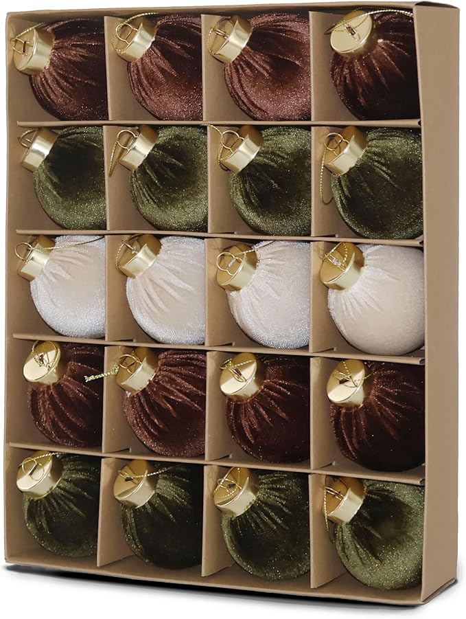 20PCS Velvet Ornaments for Christmas Tree, 2.36INCH Multicolor Flocked Christmas Ornaments Decorations Balls Set Decor