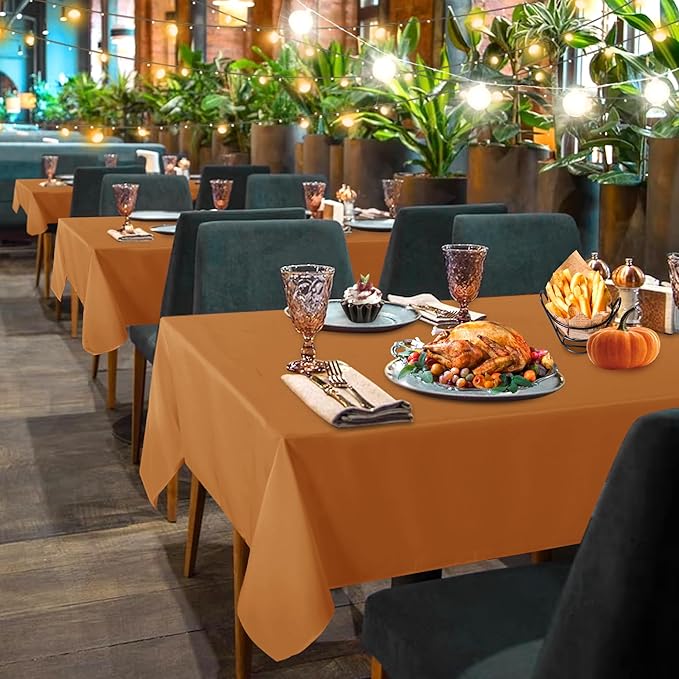 sancua 2 Pack Tablecloths Rectangular 60x102 Inch, Thanksgiving Table Cloths Rectangle for 6 Foot Tables - Stain and Wrinkle Resistant Washable Polyester Table Cover for Fall, Dining, Parties Bronze