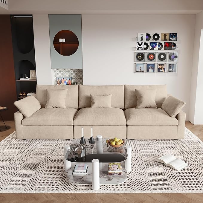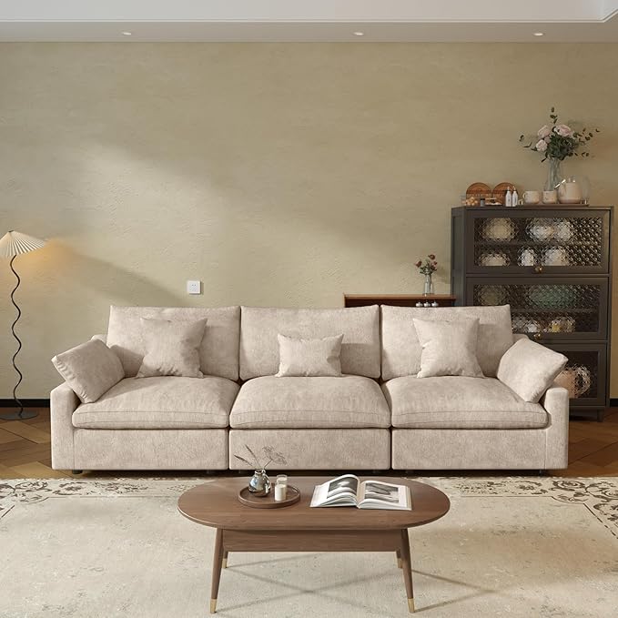 - ⛅[Comfortable Cushions]The cushion of this modular sofa is filled with down and velvet, increasing the comfort and rebound performance of the sofa cushion, bringing you a more comfortable sitting and lying feeling, allowing you to relax completely on the cloud sofa.