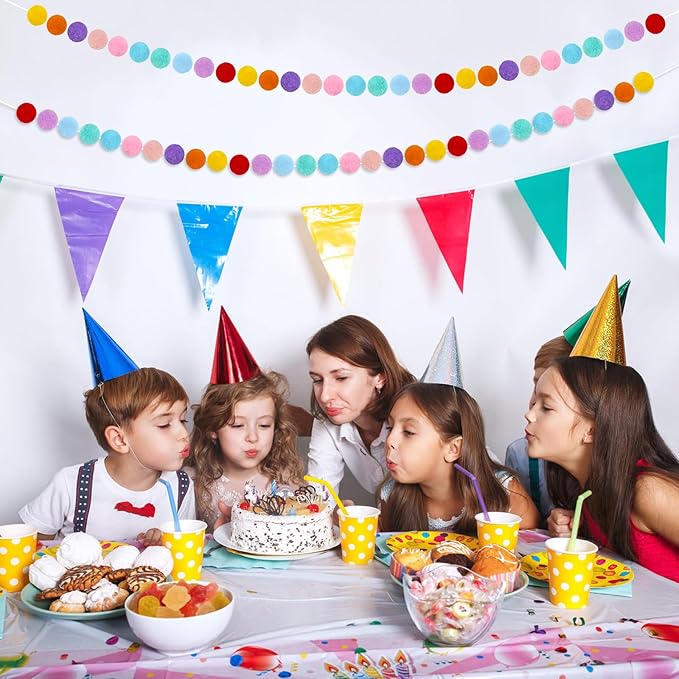 4 Pack Colorful Pom Pom Garland, 26.5 Feet Long Felt Ball Rainbow Banner, 30 Balls 10Color Felt Ball Garland for Christmas Tree Decoration Party Hanging Decor