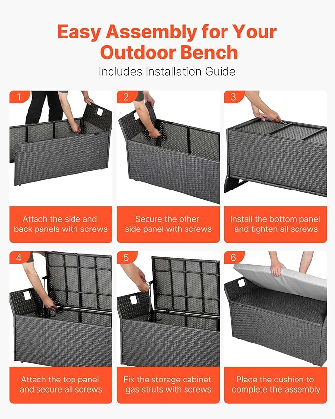 - Easy Installation: The rattan deck storage box comes with clear and detailed installation instructions, making setup quick and easy without the frustration of complicated steps. You’ll have it ready to use in no time.