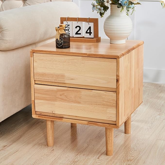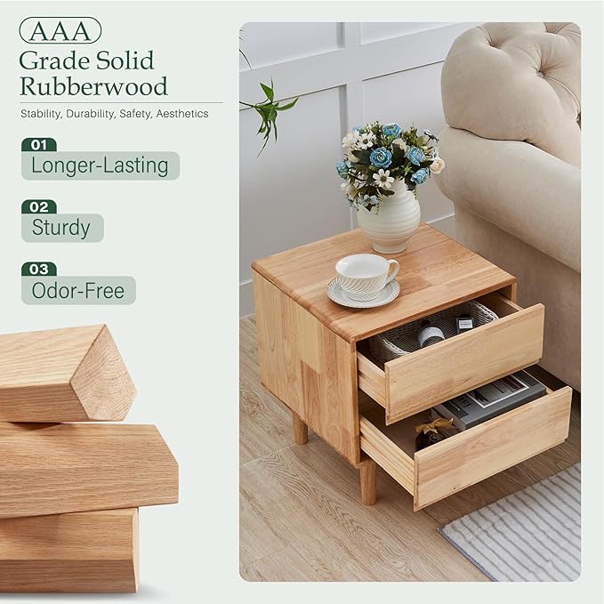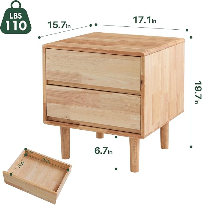 - Solid Wood Nighstand: Made from solid rubber wood won't warp. This wooden small nightstand (15.7"D x 17.1"W x 19.6"H) has excellent stability, durability, and can hold up to 110 lbs. It can be placed on armchairs, sofas, beds, corners of rooms