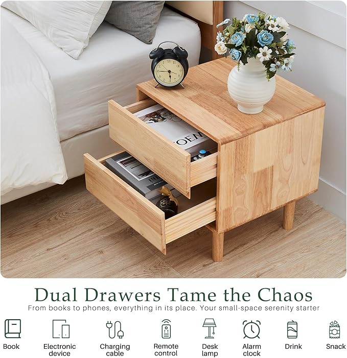 - Multi Purpose Storage: Two smooth-gliding drawers offer perfect storage for everything. Stash your phones, books, snacks, remotes, glasses, charger - all within easy reach. Works perfectly as a bedroom nightstand with drawers or a living room end table