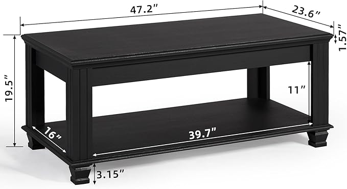 - [Spacious Storage Space]: Large tea table Measuring 47.2" W x 23.6" D x 19.5" H. This rectangular coffee table with storage includes a spacious open storage level—great for organizing books, decorative baskets, or everyday essentials. Its functional design makes it an excellent choice for those looking for square coffee tables for living room spaces.