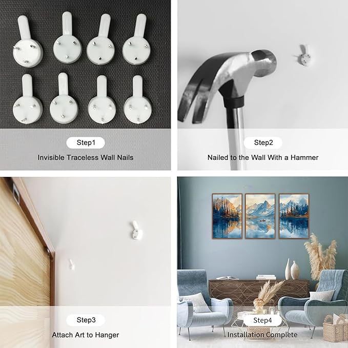 - 【Premium Quality】Three natural lake living room decorations are printed with high-definition technology,featuring bright colors that do not fade.They are all supported by PS frames to prevent damage,are waterproof,and can be used for a long time