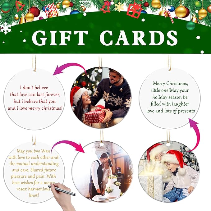 - Package Include: You will receive 30 pcs sublimation ceramic ornament blank, sublimation blank ornaments diameter 3 inches / 7.5 cm, 30 pieces of gold strings. The Christmas Ornaments can be used for a nice personal message or your wishes, sweet words