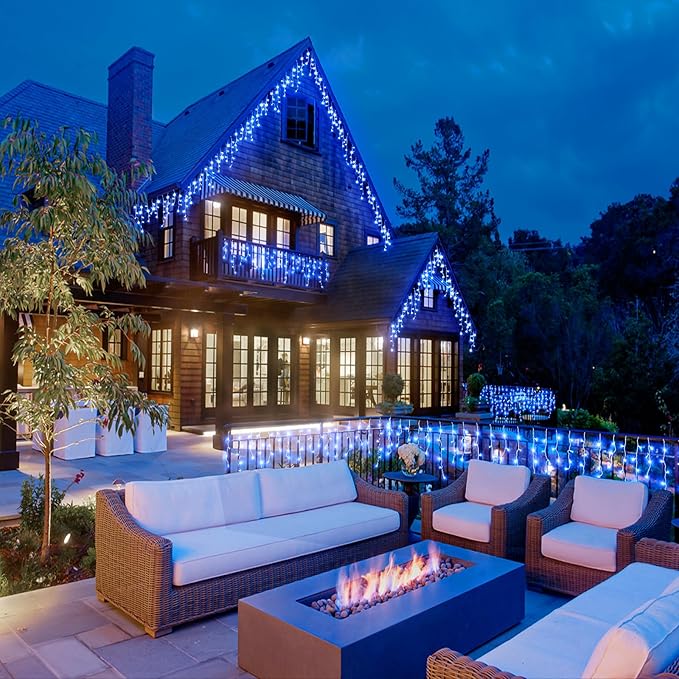 - 【Ideal Outdoor Decorations】The icicle lights outdoor are IP44 Waterproof, which can withstand all kinds of weather, ideal for indoor and outdoor decorations. However, please keep the plug away from water. These outdoor Christmas lights are perfect for Christmas, Halloween, Thanksgiving, wedding, party, Valentine's Day and any festive occasion.