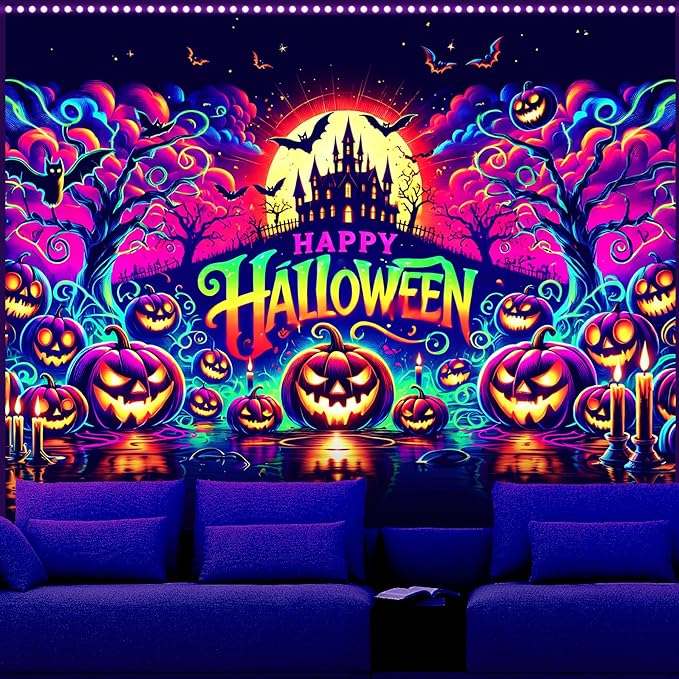 - 【Spooky UV Magic】This Halloween tapestry glows vividly under blacklight, creating an eerie, eye-catching display perfect for haunted houses, parties, or year-round horror-themed decor.