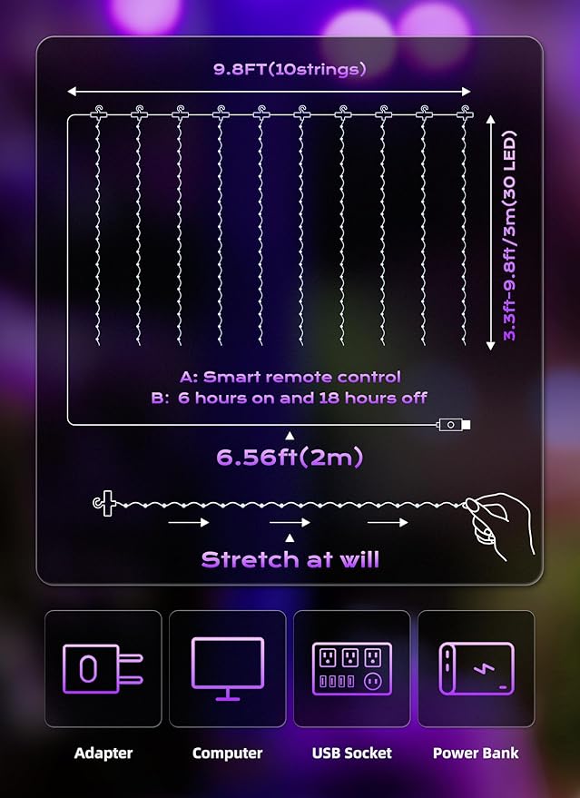 - [Safety & Decoration] Operated with 5V low voltage, our fairy curtain lights glow with low heating, and it is safe to touch; It can be safely hung on the curtains or on the wall. It is a wonderful decor for dorm, college, bedroom, party, birthday, wedding, Christmas, New Year, indoor, outdoor, classroom