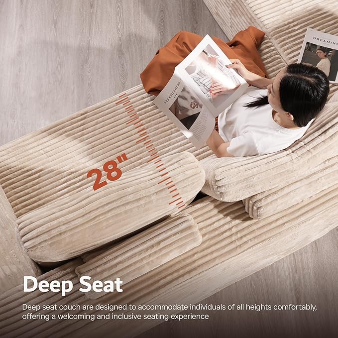 - Sophisticated Modern Design: Upgrade your living room with a plush corduroy sectional sofa. Its sleek, timeless design with clean lines and striped accents adds a sophisticated touch to any decor.