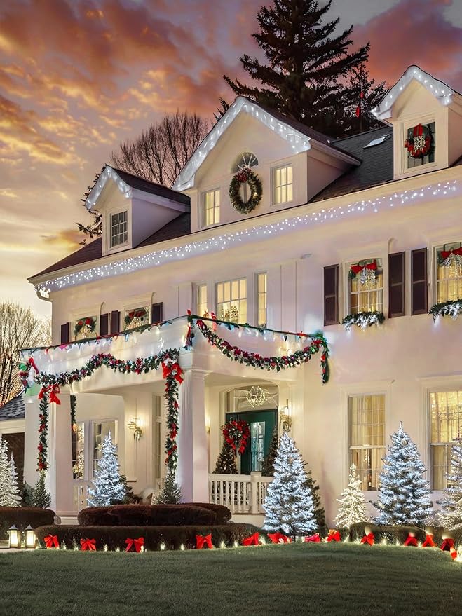 - Upgraded Solar Christmas Lights Outdoor : These solar string lights are equipped with super-bright LED beads and an enhanced solar panel for higher energy conversion. The green wire matches the color of your Christmas tree perfectly, while the LED lights create a cozy holiday atmosphere for your home. Each set contains 4pcs of string lights, each string light is 33ft long with 100LEDs + 4.9ft leading wire