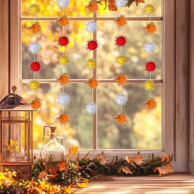 - Easy to Hang: We have assembled the pom balls, and you can hang the glittery pom pom garland in any position according to your preferences and needs without complex installation steps or other tools. You can hang autumn fluffy balls anywhere, which is the ideal choice for adding autumn flavor and home decoration