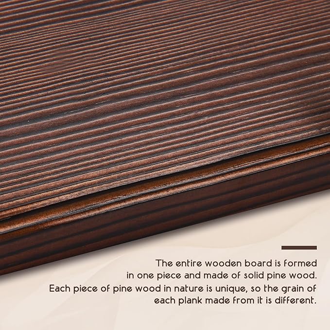 - [Unique Wood Grain]: The entire wooden board is formed in one piece and made of solid pine wood. each piece of pine wood in nature is unique, so the grain of each plank made from it is different. Coat rack comes with three brown rubber plugs that are screw caps, which cover the holes for a flawless look.
