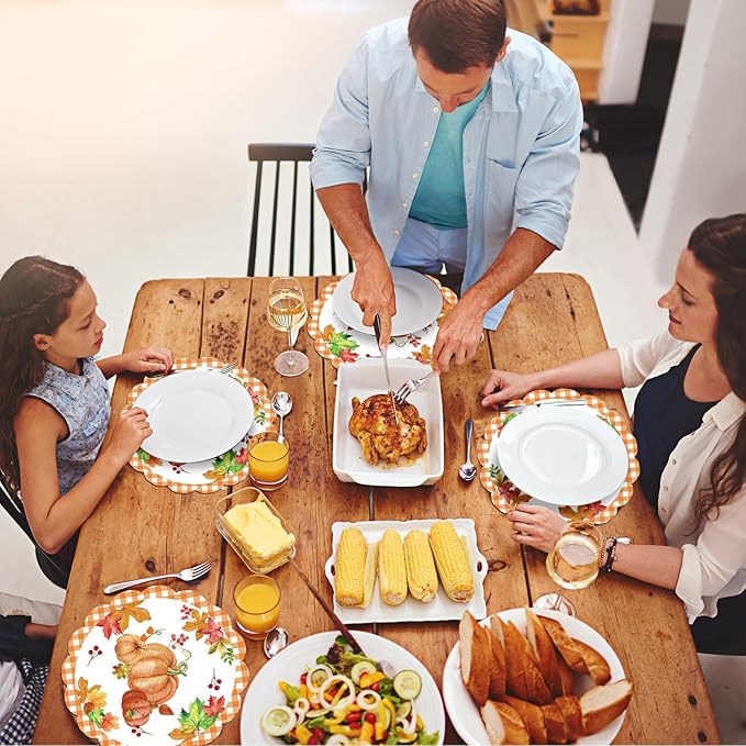 - Serves 50 Guests: Each pack includes 50 premium thanksgiving fall pumpkin round paper placemats ensure you have enough place mats to entertain all your guests, with a gold pumpkin maple leaf pattern on them, perfect for your party while keeping the party setup neat and stylish.