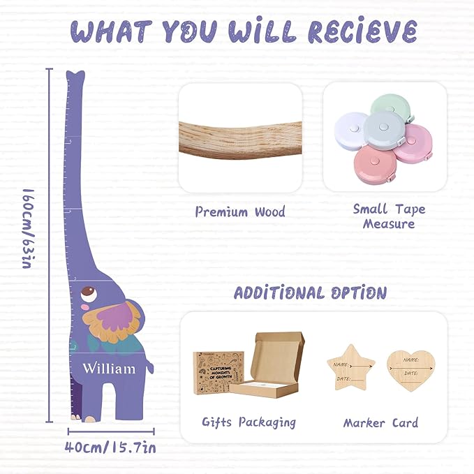 - Easy to Mark: The height measurement is engraved with clear and precise scales, you can customize different shapes of marker cards to record baby's height(with name and date), which is convenient for you to record your baby's growth moments at any time and witness every step of your baby's growth.