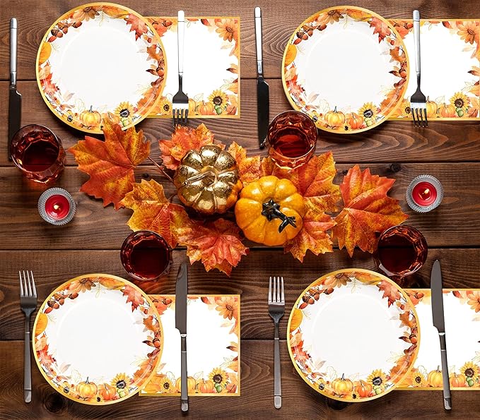 - Safe&Good Quality---Our autumn paper plates and napkins are made of 100% food-grade,BPA-free,high gloss rigid paper. Enjoy your favorite meals and drinks without any health concerns.