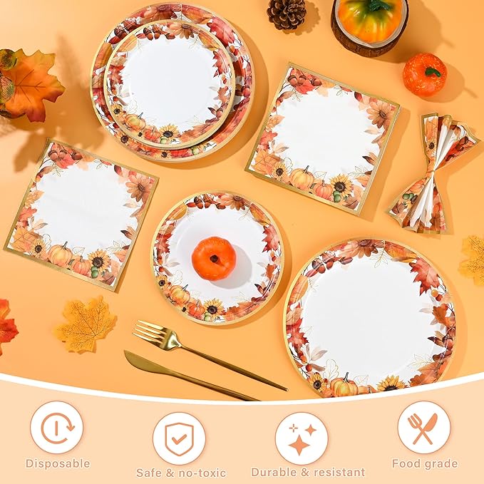 - Color : 150Pcs Fall Paper Plates and Napkins Party Supplies