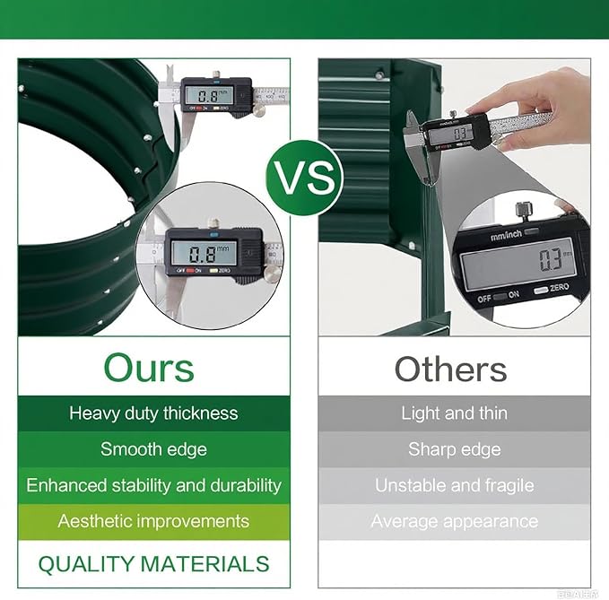 - DURABLE GALVANIZED MATERIAL: Gardmax outdoor raised garden beds are made from 0.8mm heavy-duty galvanized material, ensuring exceptional longevity and durability. It is more resistant to high temperatures and freezes, making it very suitable for outdoor use. And this metal will survive the elements for decades, but when you're ready to replace it, the metal is entirely recyclable