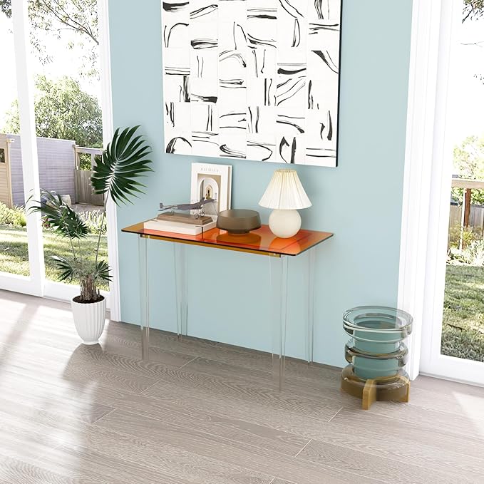 Acrylic Desk, Modern Study Table for Home Office - Extended Surface Multi-Purpose Console & Entryway Table, Sturdy Lightweight Design (42.5-inch, Orange)